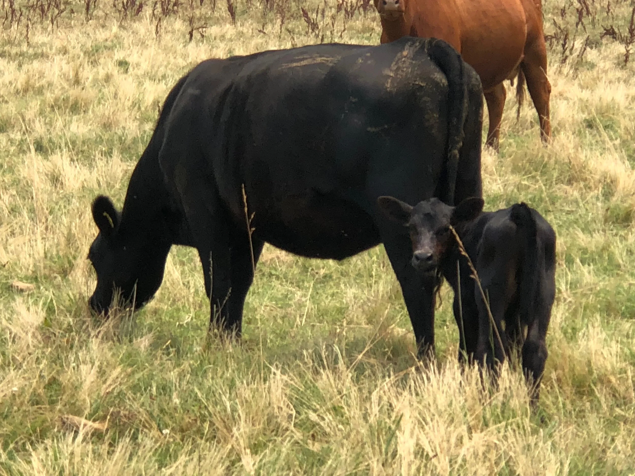 Our beef is raised naturally, no hormones, no antibiotics. Our cattle live a low stress life, living outdoors, enjoying the sun and fresh air. Cattle graze on lush pastures in the Central Valley and hill ground near the Don Pedro Reservoir. Once our cattle approach the harvest date we continue to pasture graze while offering non-gmo grain supplement. This develops beautiful, tender and juicy meat with desirable texture and flavor.